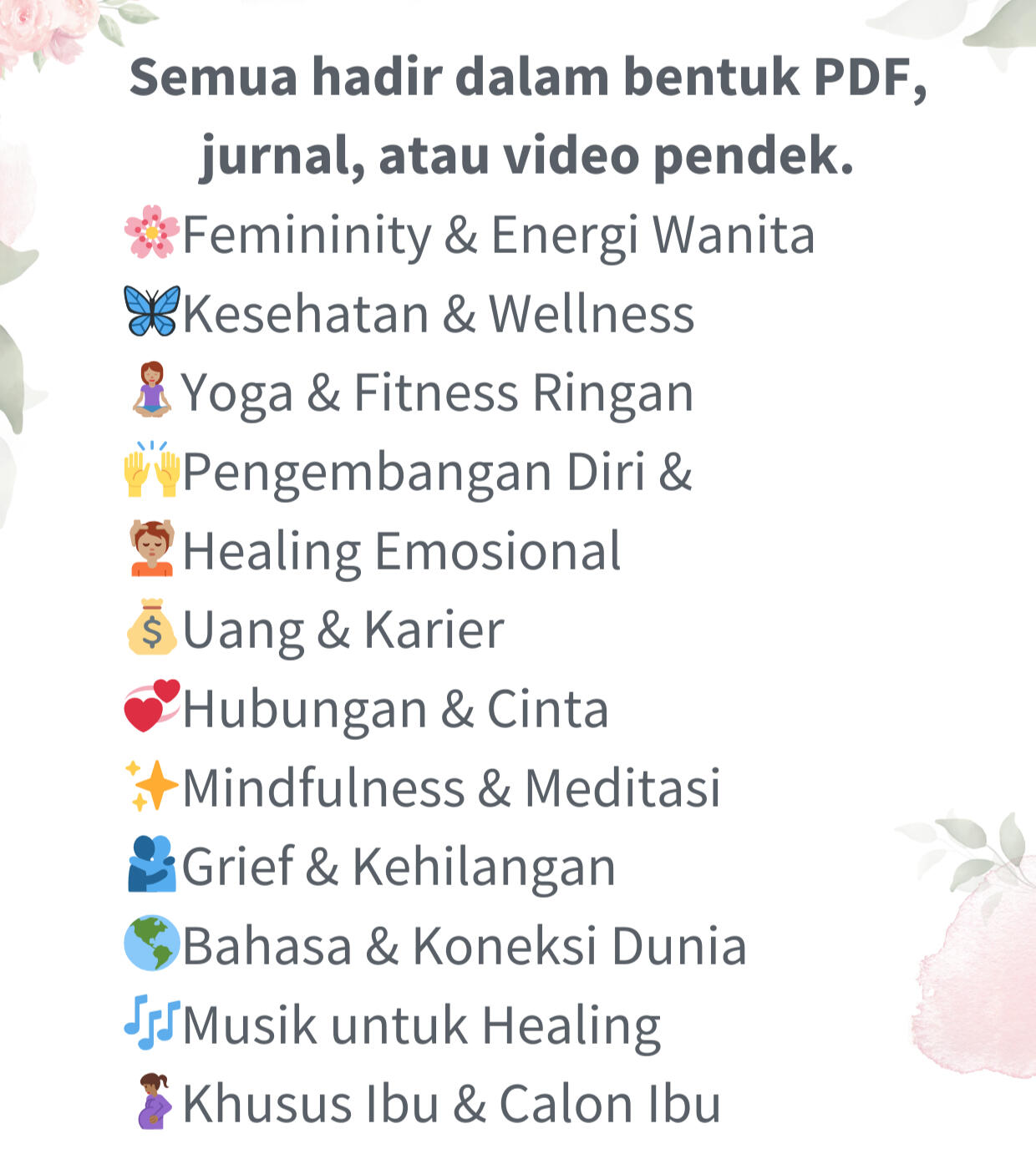 PDF & journaling ringan untuk mendampingi perjalananmu sebagai perempuan, ibu, dan remaja.