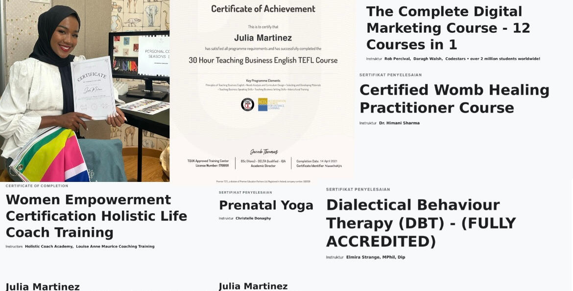 Bukan untuk mengumpulkan gelar - tapi untuk menjadi penopang yang dulu juga saya cari.Saya tersertifikasi dalam: